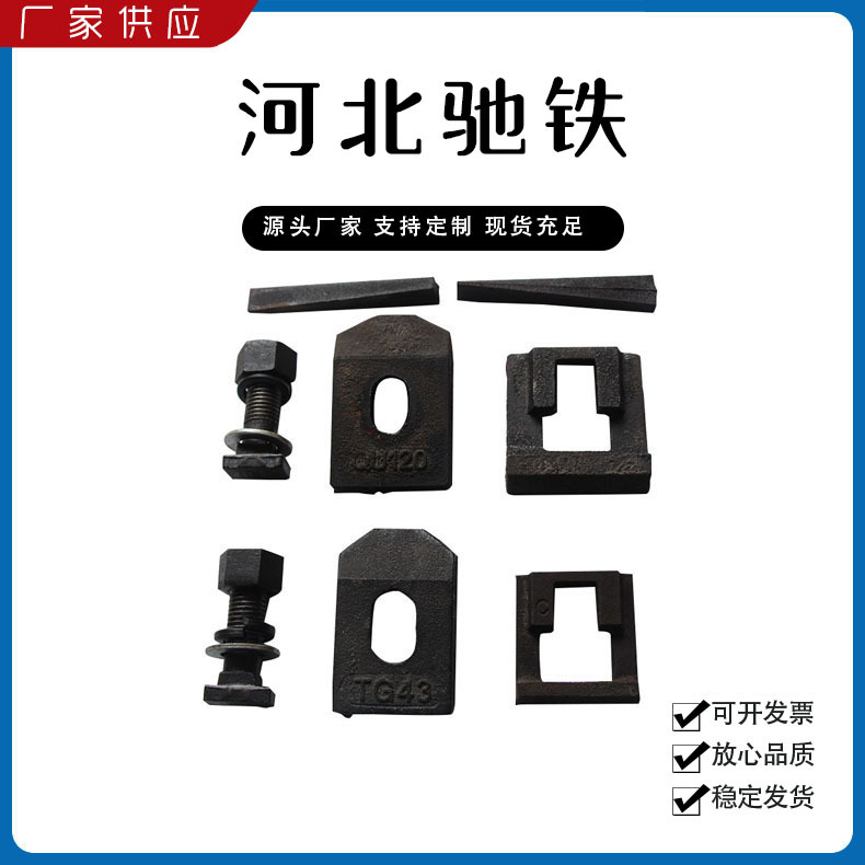 鐵路配件行車配件工礦配件魚尾板道釘壓軌器軌道壓板軌距拉桿護軌扣板T型螺栓魚尾螺栓彈條鋼軌及加工